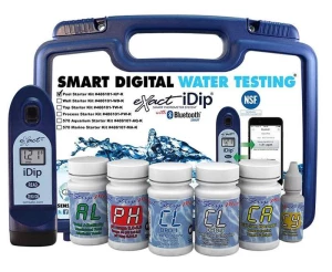 The eXact iDip® Pool Starter Test Kit is an advanced and up to date way to test for swimming pool water. The eXact iDip® Pool Starter Kit arrives ready to test for Total Alkalinity, pH, Free Chlorine (DPD-1) and Combined/Total Chlorine (DPD-3). We have also included test reagents for Calcium Hardness and Cyanuric Acid (just download the premium software to test for these professional parameters). All this conveniently packed in a rugged and durable plastic case with secure fasteners and padded compartments ready to go!