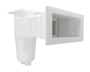 Certikin skimmers are designed to draw water from the surface of the pool in order to extract and retain leaves, floating debris etc, preventing it from sinking to the bottom of the pool. The accompanying extension throat allows the skimmer body to be positioned at any distance from the wall, ideal when using an automatic pool cover or when designing a pool with an ornate surround.