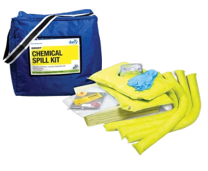 Our small spill kit Includes 25 pads, 4 socks, 2 cushions, 1 slab, disposable bag and tie, gloves and goggles